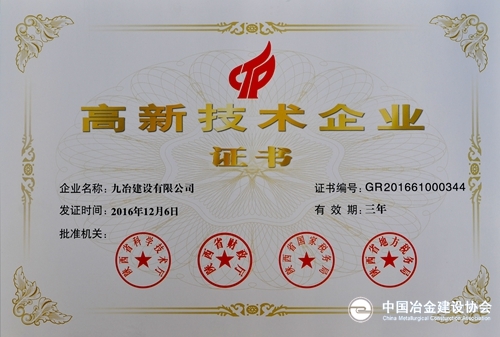 九冶获批国家高新技术企业
