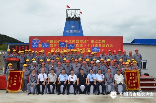 7月7日上午10:08,中国华冶在鞍山陈台沟项目部现场隆重召开“陈台沟千米超深井连续三个月成井超百米劳动竞赛”庆功表彰大会。中冶集团暨中国中冶职工董事、机关党委书记、工会主席林锦珍,公司党委书记、董事长刘玉军,鞍山五矿陈台沟公司总经理张志献,公司副总经理孔繁军、工会主席李铁山,鞍山五矿陈台沟矿业有限公司职工代表和辽宁矿业分公司职工约100人参加了表彰大会。