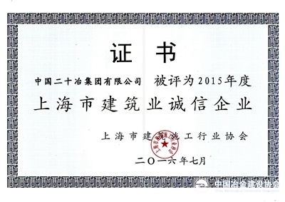 中国二十冶集团荣获上海市建筑业诚信企业称号