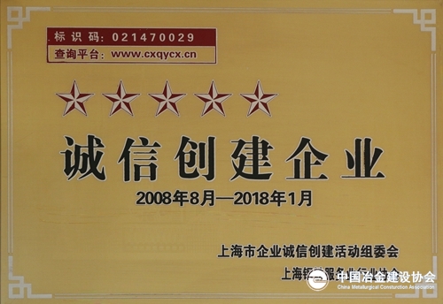 11月15日,中冶宝钢技术获得上海市企业诚信创建活动组委会和上海市钢铁服务业行业协会联合授予的铜牌,再次荣获上海市“五星级诚信创建企业”称号。今年7月,公司参加了上海市“诚信创建企业”轮训,并根据持续申报要求,认真填报了相关申报材料,经过组委会和行业协会严格审核,并经第三方评估机构征信,综合测评通过,持续获得了此殊荣。