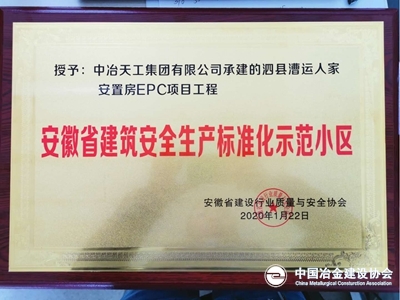 中冶天工项目荣获“安徽省建筑安全生产标准化示范小区”荣誉称号