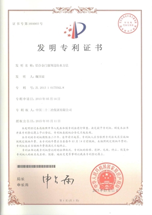 11月10日收到证书,中国二十二冶集团“铝合金门窗周边防水方法”取得国家知识产权局发明专利授权。