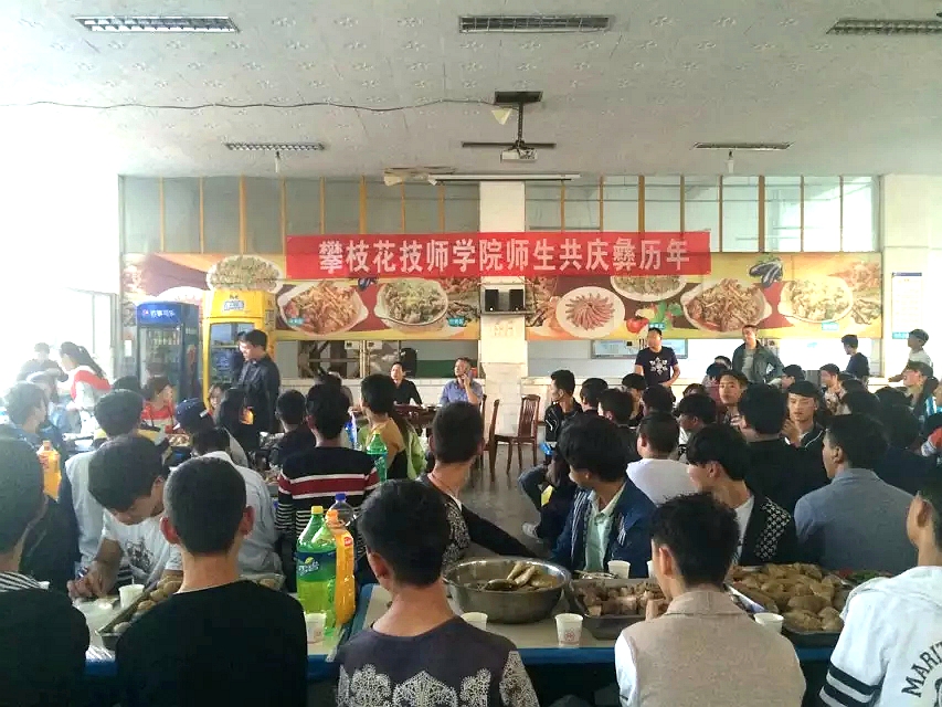 下午五点,大餐准备完毕,美味佳肴纷纷上桌,大家齐聚在食堂大厅,活动在彝族歌曲“库斯喽”、“敬酒歌”等祝福的歌声中拉开序幕,学生代表沙千方和陈国军分别用汉语和彝语送出节日的祝福,他们感谢党、感谢父母、感谢学校、感谢老师和同学。随后,攀枝花技师学院领导也向同学们送上了节日的问候。