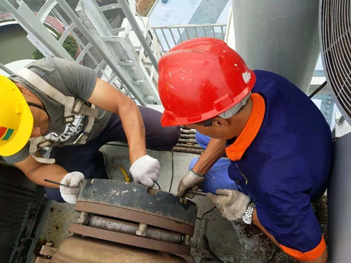 海心沙岛紧邻珠江,而广州又属海洋性气候,风大雨多,风帆为钢结构,整个提升、控制系统和运转机构由于长时间没有使用,在现场设备通电后不能运行。整个机械传动、屏架体、柔性提升、抗风龙骨、平衡臂、轨道、防压屏垫块、张紧装置、变频器、通讯系统、中央控制系统、重新编写程序等都要一一检查,时间紧、任务重,现场作业人员每天工作都在14小时以上,中午吃饭就在现场,加班到11点,但大家的目标只有一个,确保风帆的正常运行。组委会每天的例会上,只要是舞台出现的问题,都找中十冶,原本我们只负责八面风帆的保障任务,后来的舞台机械升降、前景的开合、舞台的排水等工作全部交给了中十冶来做。四大舞美的任务除灯光和音响外的全部重任都落在中十冶项目部的肩上。在现场,对讲机里听到最多的也是“中十冶”。用导演组的话讲,只要中十冶在,我们就放心。