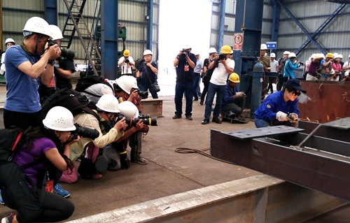 6月15日,参加“中国梦•劳动美”第五届全国职工摄影展陕西汉中站巡展及采风活动的130余名摄影家走进九冶汉中公司焊工培训中心、钢构分公司制作现场,聚焦九冶的工匠技艺和“工匠精神”。