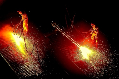 2015年年中,铸坯自动化清理装置在经过复杂的设计、组装、试验后,在宝钢二炼钢区域成功安装并点火调试。协力分公司负责人、中冶重机分公司负责人和宝钢股份公司炼钢厂现场负责人对试验效果进行现场评估,一致认为该设备适合现场需求,可以有效降低劳动强度,员工所处的高温、高粉尘和高噪音的环境得到有效改善。
