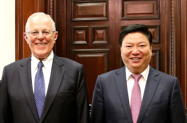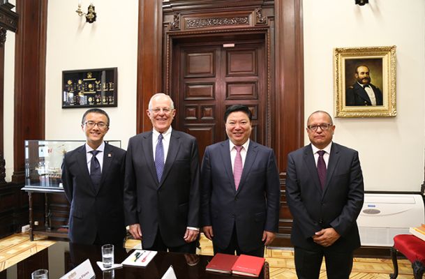11月17日,在APEC会议即将召开前夕,秘鲁总统库琴斯基在总统府亲切会见了正在秘鲁视察邦巴斯项目并参加APEC工商领袖峰会的中国五矿总经理、党组副书记,中冶集团董事长、党委书记国文清一行。