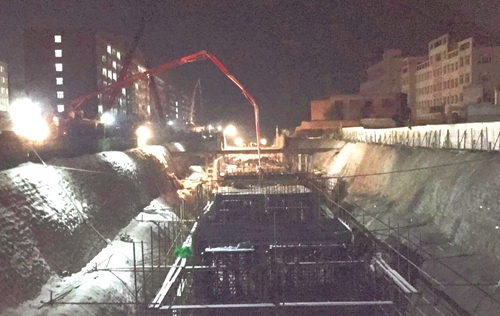 在施工过程中,项目部班子组织和带领参建人员发扬“一天也不耽误,一天也不懈怠”朴实厚重的中冶精神,每天早晨6点30分进入现场施工,在冰天雪地、料峭寒风中奋战到夜间12点以后,甚至通宵达旦,想方设法解决难题、攻克关隘,保质量、抢工期,与寒冬的脚步赛跑,争取宝贵的分分秒秒,高速、优质、安全、低耗地实现了一个个节点,完成了一项项施工,打响了四平市地下综合管廊的第一炮,展示了央企的内涵、实力与风采。