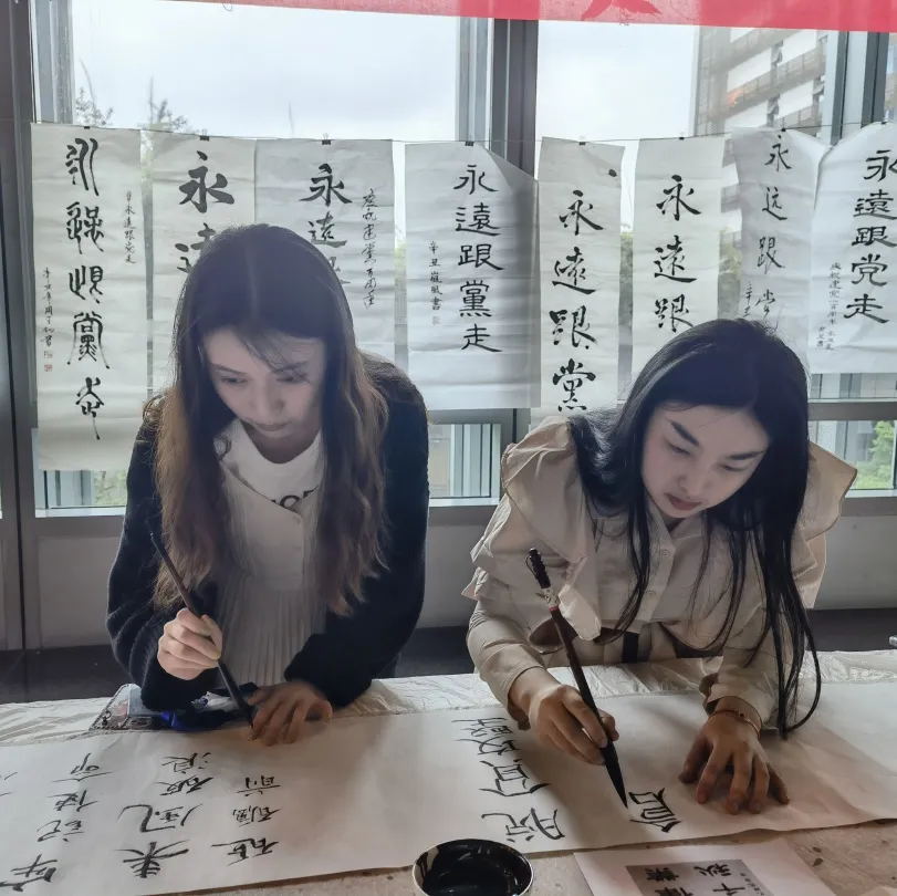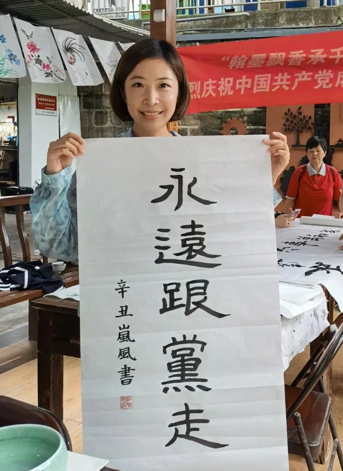 5月17日上午,中冶赛迪老、中、青三代员工书法爱好者汇聚社区文化长廊同台献艺,现场书写红色诗词为党的百年诞辰献礼,讴歌了党的优良传统,弘扬了民族优秀文化,尤其是大家用篆隶行楷草等多种书法字体共同书写“永远跟党走”,展现和表达了赛迪人忠诚于党的赤诚情怀,把活动推向高潮。 (中冶赛迪 供稿)