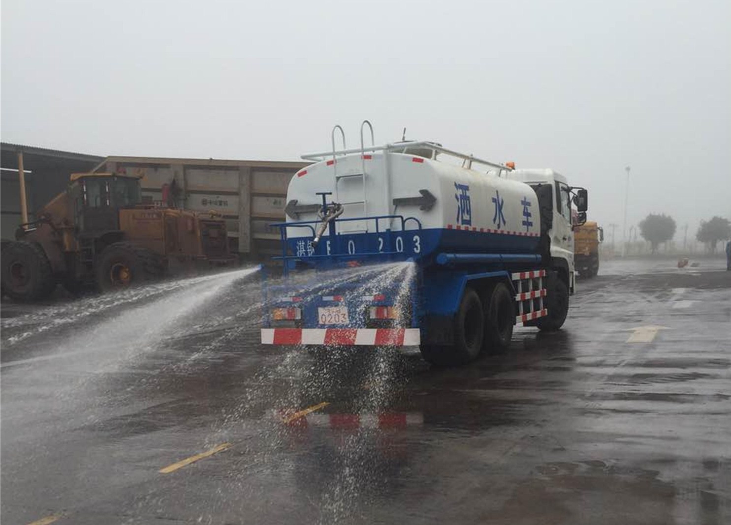 为解决扬尘问题,减少现场灰尘对员工身体健康的影响。分公司将先进的改造技术与新颖的理念相融合,对闲置的11吨吊斗车进行改造。根据原车平台匹配相应的水箱、水泵以及整个管路的排布重新设计,制定详细的施工方案,将其改造为装有圆柱喷头、鸭形喷嘴和莲蓬头喷嘴,后部装配有高压水炮,顶部新增喷洒除尘的多功能洒水车,实现资源最大化利用,有效节约成本,满足现场需要。改装后的洒水车,还能适应更多的作业环境,对抑制扬尘、保护环境有着积极的作用。 (中冶宝钢技术 曲冰晶)