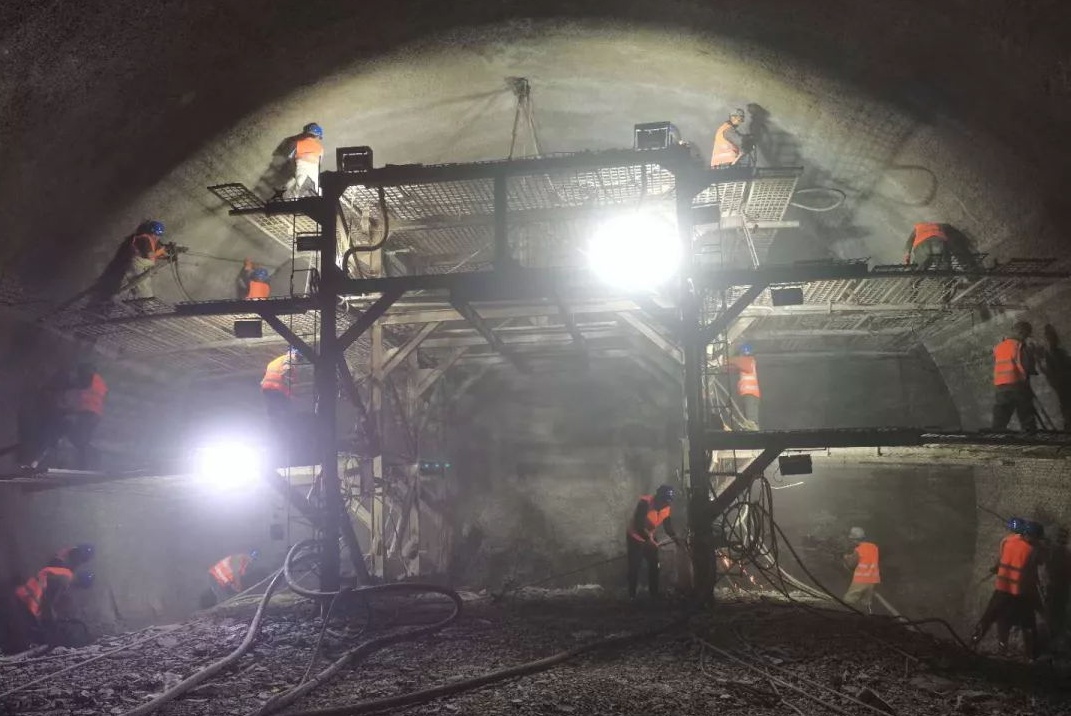 朝阳沟段隧道地质情况较差,均为中风化页岩,围岩水平分层,较破碎,且含水量较大,施工难度大,尤其在春节期间必须保证施工安全。进入隧洞后,周亮仔细查看现场的施工进展和安全防范情况,生怕有所遗漏。二月的武安,天气依旧冷得彻骨,即使在隧道内,气温依旧很低;在手电灯光的照射下,周亮的步伐又逐渐加快了起来,前面便是正在组织隧道炮眼钻孔的工作面。