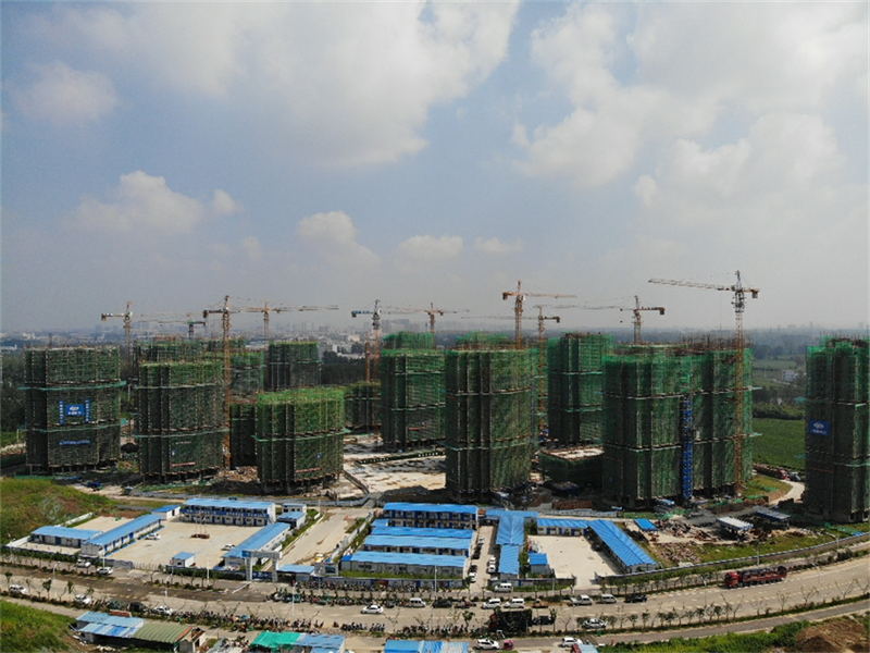 高楼伴着脚手架拔节高长