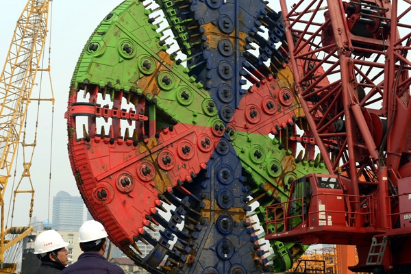 “巨无霸”盾构机刀头吊装落位