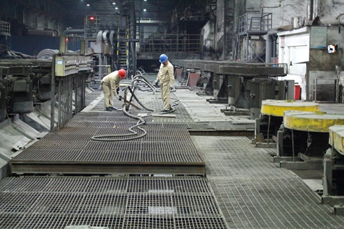 晚上8时,伴随着球磨欢欢的轰鸣声,在球磨进矿端,熊国胜站在安全地方,将钢球斗底部的挂钩敲开后,一个又一个的钢球有节奏的加入球磨机内。在球磨排矿端,伴随着天车“叮铃……叮铃……”的声音,组长方松正在帮忙球磨吊块作业。“今天排班会上,班长宣传公司工作会和职代会精神,明确了球磨电单耗再下降5%的目标。我们算了一笔账,在满足磨矿质量的前提下,球磨台效每小时提高10吨,每小时节电42.9元,一年下来节电375804元……所以大家更学会了巧干。”