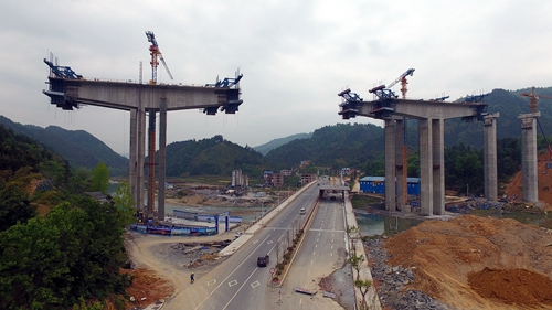 图为都柳江特大桥主桥正在连续刚构挂篮悬浇施工。 (中国一冶集团 陈 明 刘 欢)