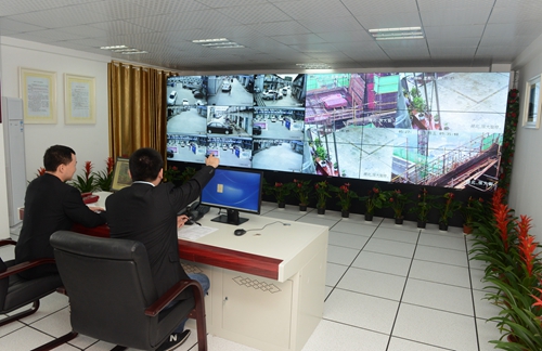 5月27日,中国一冶项目管理人员正在运用远程视频监控系统查看工地现场安全情况。该公司可在监控中心实时掌握外地建筑工地现场施工情况,保障工程实施质量和人员安全。