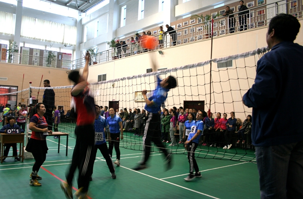 开幕式上,房地产公司经理张永革首先致词。运动员和裁判员代表分别进行了表态发言。随着公司党委书记白峰宣布比赛开始,参赛各个队精神抖擞地投入到了紧张有序的比赛中。赛场上,队员们协同配合,敢拼敢打,场下的啦啦队全力助威。这是实力的比拼,这是毅力的较量,这是耐力的考验,这更是团队精神的展现。一个个短平快的扣球搏杀,一个个高位跃动拦网,一个个临危时刻的倒地救球,不时迎来现场观众的阵阵掌声。参赛各队各展风采,各施绝技,他们以永不言败的精神,展现了高超的体育竞技水平,诠释了二冶人团结合作,奋勇争先的风采。