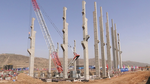 截至目前,此项工程精矿仓及配料仓主厂房处于预制柱及厂房吊车梁安装阶段、熔炼区主厂房处于钢柱安装阶段,熔炼区烟囱基础混凝土浇筑完毕。 (中国二十二冶集团 苑志波/图 王志华/文)