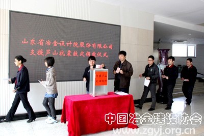 为支援灾区人民抗震救灾,山东省冶金设计院股份有限公司积极响应上级号召,于