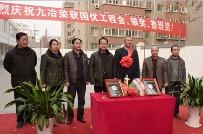 2011年12月28日下午,九冶二公司举行隆重的庆祝仪式,欢迎九冶二公司赴京领受国优金奖、银奖、鲁班奖人员---二公司经理万福储载誉归来,并热烈欢庆公司荣获国优工程金奖、银奖。淄博电视台、《淄博日报》、《淄博晚报》、《淄博财经新报》等多家新闻媒体进行了现场采访和报道。