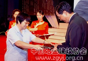 中央候补委员、中国钢铁工业协会会长、上海宝钢集团公司董事长谢企华在上海宝钢集团公司投产20周年仪式纪念大会上颁奖。