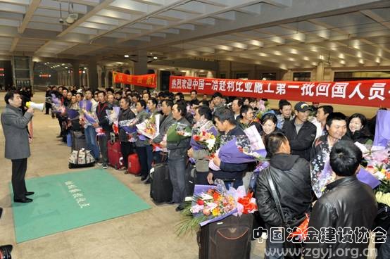 2月28日清晨6时30分,乘坐由北京西开往汉口的Z3次列车载着中国一冶集团首批撤离利比亚的59名施工人员安全抵汉,一冶领导到车站站台迎接回到家乡的员工。