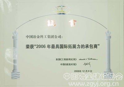 中冶集团荣获第三届《工程新闻纪录》杂志和《建筑时报》“中国承包商和工程设计企业双60强”称号 。 (中冶集团新闻信息中心) ②