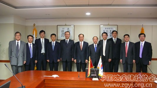 杨长恒董事长(左五)、朴承夏社长、三菱商事韩国公司伊与部社长等与中冶代表团成员合影。
