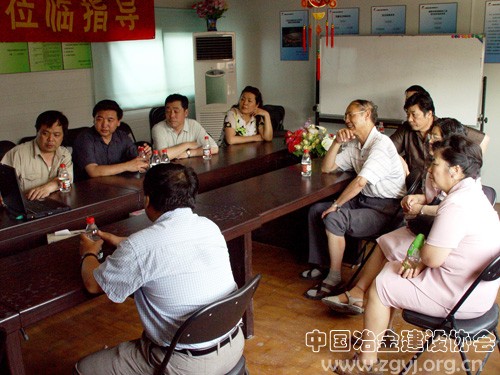 承担施工任务的宝冶建设“鸟巢”工程负责人向协会同志讲解“鸟巢”概况。