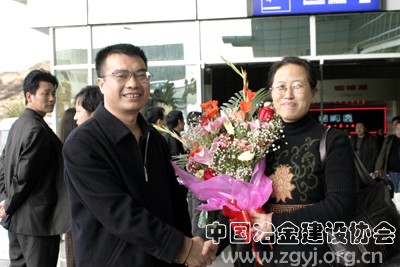 十九冶副总经理蔡仲斌到机场迎接“巾帼建功标兵”祁春娥回攀。田和平/摄