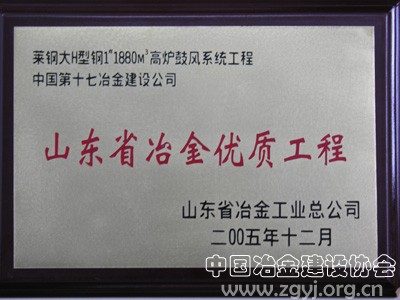 十七冶莱钢大H型钢1880m3鼓风系统工程获省优
