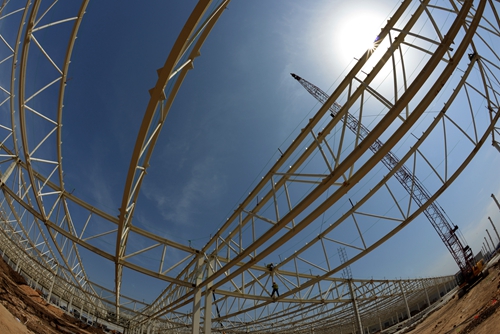 3月27日,工人们正在抓紧最后几跨厂房钢结构吊装作业。由中国一冶集团建安公司承建的上汽通用汽车武汉分公司配套发动机三期工程项目厂房钢桁架吊装全部完工,标志着该工程即将全面进入机电设备安装阶段。