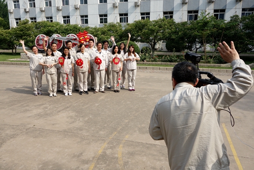 5月10日,河钢唐钢团委正在物流分公司组织岗位职工拍摄五月份集体婚礼祝福花絮。