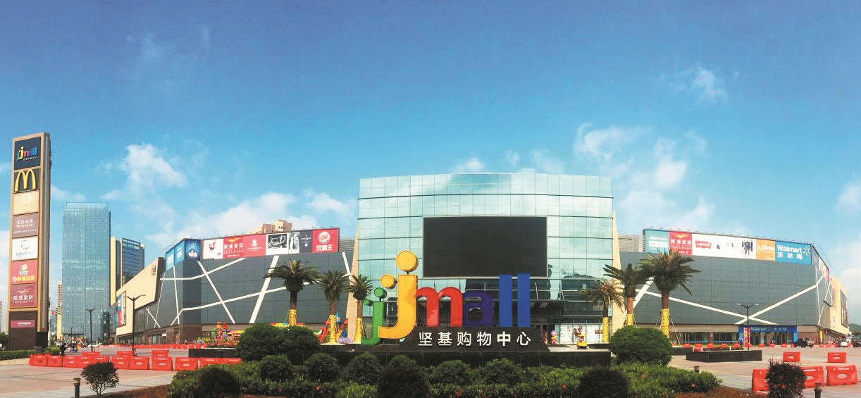 河源市商业中心位于广东河源市中心,为河源市重点建设项目,由广东坚基集团有限公司投资建设。一期工程总占地面积约16万平方米,建筑面积43.5万平方米,含购物中心、商业步行街、开放型市民休闲文化广场(越王广场)、桃花水母实景剧场、I-MAX影院、真雪滑冰场、会展会务中心、5000平方米音乐喷泉、公寓、高尚住宅等多项内容。购物中心工程是河源商业中心的核心部分,总建筑面积22.2万平方米,主体为框架结构形,共6层,其中包括负2层的地下停车场、负1层的大型连锁超市,地上4层商业购物区,建筑总高度23.9米。该工程填补了河源市无大型商业购物中心的空白,成为集购物、美食、娱乐、艺术于一体的城市综合体以及客家文化的城市缩影。 (中国二十二冶集团 唐家康)