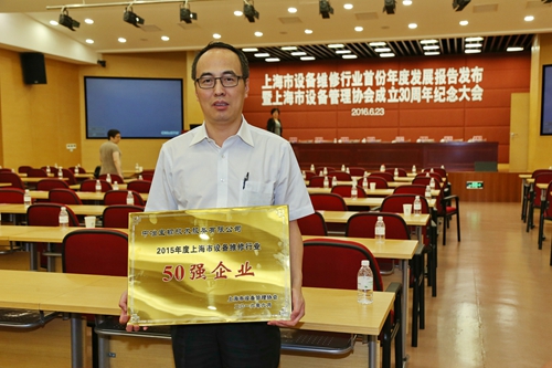 6月23日,“上海市设备维修行业首份年度发展报告发布暨协会成立30周年纪念大会”在上海电气培训中心报告厅举行,会上对2015年度上海市设备维修行业企业五十强进行了授牌,公司以绝对优势再次荣获上海市设备维修行业企业五十强第一名。