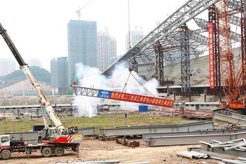 上海宝冶江门市滨江体育中心主体结构全面封顶