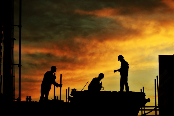 工地夕照 张元春 摄