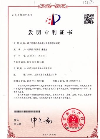11月25日,中冶宝钢收到国家知识产权局发来一项专利证书,“一种磁力运输机卷扬钢丝绳脱槽保护装置”获国家发明专利。