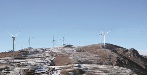 11月22日,中国二十二冶集团承建蔚县老爷庙梁工程首批5台风机并网发电。