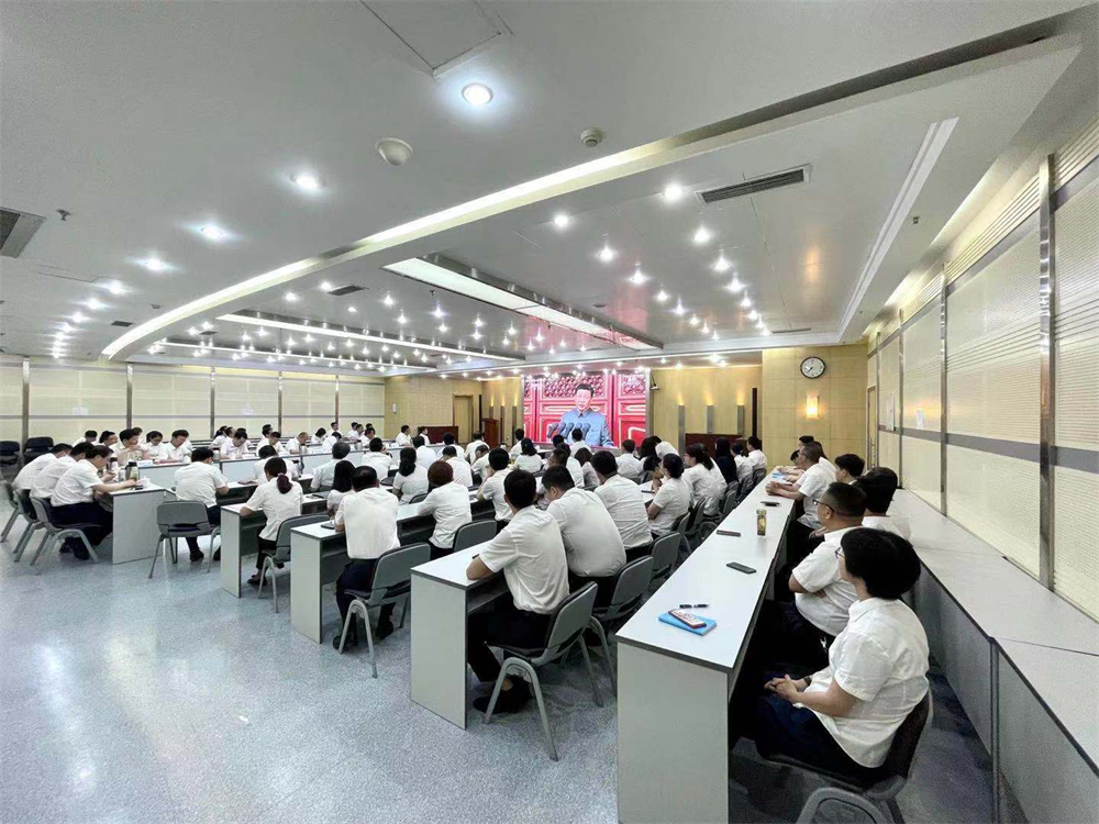 公司党委书记、董事长周青带领公司党委理论学习中心组成员在会议室集中收看大会直播。以此同时,公司全体干部职工通过电视转播、手机直播、收听广播等多种形式在近200个会场收看了大会直播,向伟大的中国共产党致敬!
