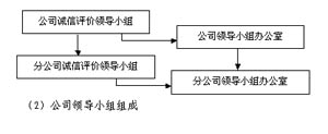 公司成立了高级别的企业内部诚信评价工作领导小组统筹负责企业内部诚信评价体系的建立和运作,下设办公室具体负责具体日常工作,同时要各分公司也要建立相应的机构。