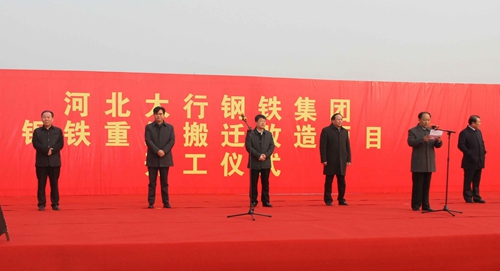1月5日上午,中国二十冶集团河北太行钢铁集团钢铁重组改造搬迁项目举行盛大开工仪式。河北太行钢铁集团有限公司董事长姚明芳,总经理姚菲,武安市市委书记张臣良,中国二十冶集团总经理朱永贵,中国二十冶集团副总经理、河北有限公司董事长马明文,中国二十冶集团副总工程师、河北有限公司党委书记、北方分公司党委书记王朝晖,河北有限公司总经理、北方分公司经理王瑞卿等相关领导出席了开工仪式,共同见证了这一历史性的时刻。