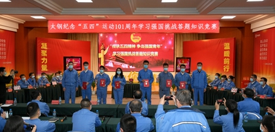 在建团98周年和“五四”运动101周年来临之际,为激发太钢广大团员青年学习新思想、争做新青年的热情,进一步提升广大团员青年使用“学习强国”平台开展学习活动的积极性主动性,扎实推进太钢青年高质量发展行动计划,太钢团委组织了一场以“传承五四精神,争当强国青年”为主题的“学习强国”挑战答题竞赛。经过初赛和复赛的激烈角逐,最终有6支队伍从31支代表队中脱颖而出闯入决赛。图为4月23日,太钢纪念“五四”运动101周年“学习强国”挑战答题竞赛决赛现场。 太钢新闻中心 王旭宏 摄影报道