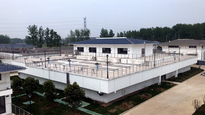 该项目主要向城区及周边维桥乡、淮河镇、古桑乡和穆店乡等四个乡镇供水,服务面积达60平方公里,可有效解决23万人安全饮用水问题。图为深度处理工程活性炭滤池外景。 (中国一冶集团 陈 明 蔡有武)