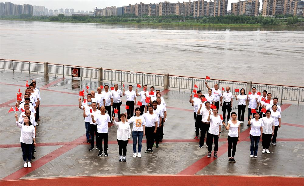 在橘子洲头青年毛泽东的雕像前,人头攒动,络绎不绝,前来瞻仰的游客掏出手机或录像或拍照。当年,32岁的毛泽东凝望着滔滔北去的湘江水,发出了“怅寥廓,问苍茫大地,谁主沉浮?”的惊天一问。此时此刻,此情此景,感召着每一位党员,他们挥动手中的五星红旗,激情齐唱《歌唱祖国》,以表达对一代伟人的敬仰之情。