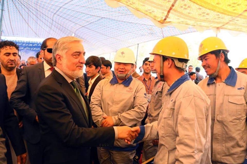 阿富汗首席执行官阿卜杜拉与中国十九冶员工亲切握手。
