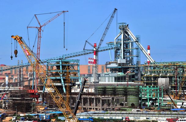 代表世界最高水平的湛钢高炉工程在建设中。
