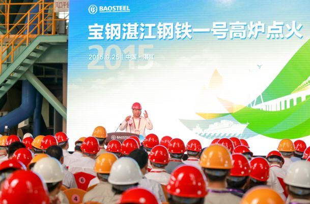 中冶集团党委书记、董事长国文清在湛江钢铁一号高炉点火现场会上讲话。