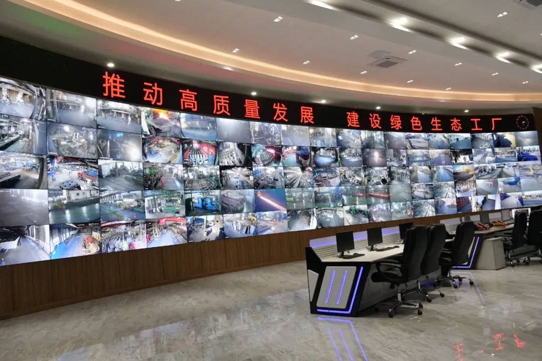 该智能生产管控中心总面积576平方米,由90块屏幕组成的扇形巨型显示屏上跳跃着公司生产、能源、物流安全环保、设备状态等实时动态和数据16名调度员坐在电脑前有条不紊地观察画面、下达指令,整个管控中心安静有序。