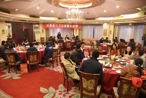 另一方面,项目部在以往开展各类活动的基础上,今年还与嵊泗县总工会联系,参与了当地“喜迎新春——关爱外来务工人员”系列活动。活动设置了飞镖团队赛、趣味投篮个人赛、保龄球个人赛和趣味乒乓接力赛等环节。参赛者在工作人员的指导下,积极挑战比赛项目,现场气氛活跃。活动结束前,县总工会还为外来务工人员送上了年味十足的窗花,并欢聚一堂,提前吃了顿年夜饭,欢庆即将到来的新春佳节。